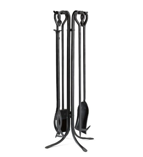 5 Piece Tall Hand Forged Iron暖炉ツールセット、ポーカーTongsショベルほうきとスタンドShepherd 'sフック木製ストーブブロンズ仕上げ、直径7 × 32 1 / 2 hで