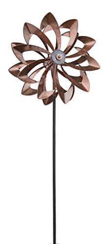 ソーラーLEDメタルFlower Garden Wind Spinner直径24.5 × 11.5 D X 75 H ブロンズ 53563-DCP