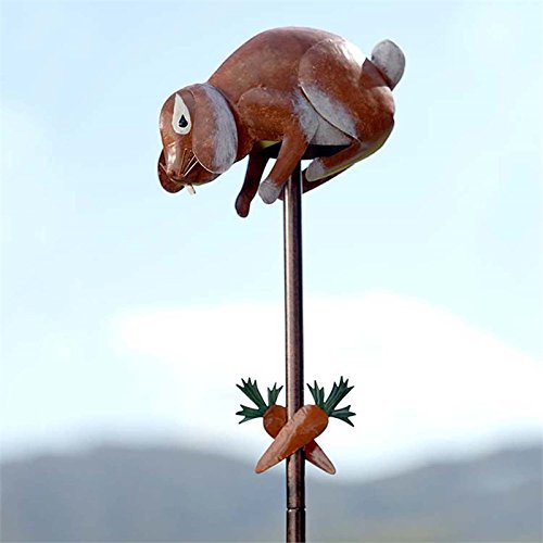 を庭で注意してくださいこのBunnyぶらぶらしない。このハンマーメタルバニー庭スピナーはlongingly下に到達するためにニンジンだけを取り出した。うさぎの回転の動きを追加が簡単なと興味をあなたのヤードまたは庭園。手でバリ製でカラフルな仕上がりになっています。サイズ9 – 1 / 2 " L x 3 – 1 / 2 " W x 53 " H