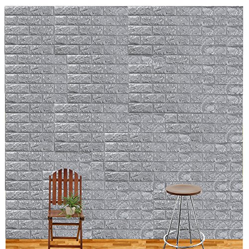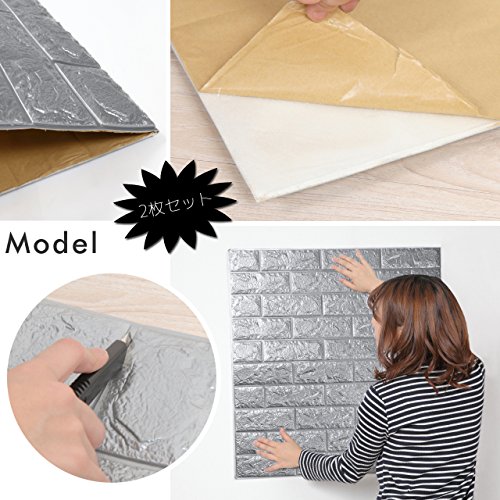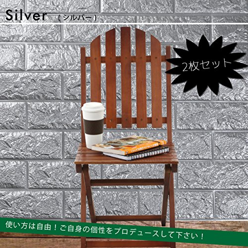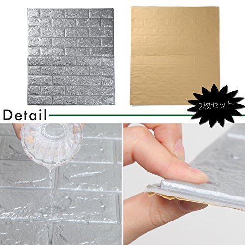 PlumRiver 【3Dで柔らかい弾力壁紙】70cm×77cm※クッション壁紙2枚セット※ DIY 防水 ブリックステッカー 壁紙 貼ってはがせる 壁紙シール ブリック壁紙 レンガシール レンガ調 タイル アンティーク インテリア クロス ブリックタイル 【シルバー】