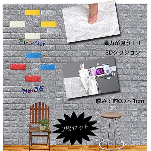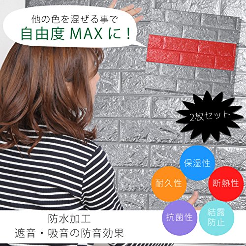 - レンガ調デザイン(レンガ風・レンガ柄・レンガタイプ)の弾力がある素材の為、若干の防音効果があります。壁のキズ隠しや汚れ隠しはもちろん、インテリアにも最適。猫の爪痕などもバッチリ隠せます。