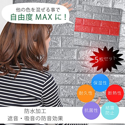 - レンガ調デザイン(レンガ風・レンガ柄・レンガタイプ)の弾力がある素材の為、若干の防音効果があります。壁のキズ隠しや汚れ隠しはもちろん、インテリアにも最適。猫の爪痕などもバッチリ隠せます。