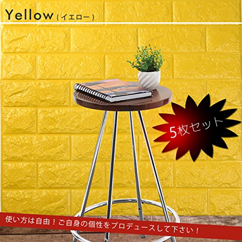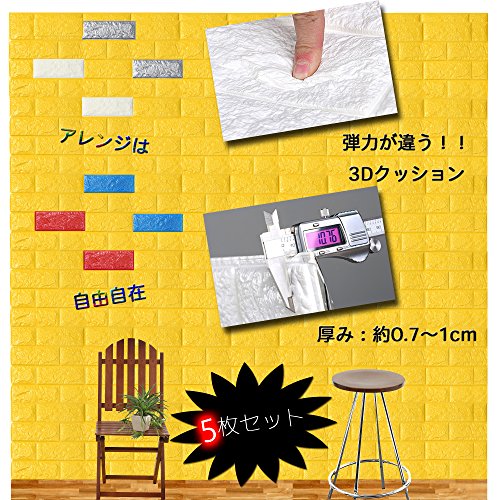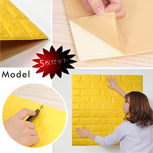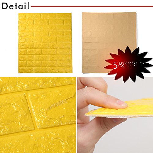 PlumRiver 【3Dで柔らかい弾力壁紙】70cm×77cm※クッション壁紙5枚セット※ DIY ブリックステッカー 壁紙 貼ってはがせる 壁紙シール ブリック壁紙 レンガシール レンガ調 タイル アンティーク インテリア クロス ブリックタイル 【イエロー】
