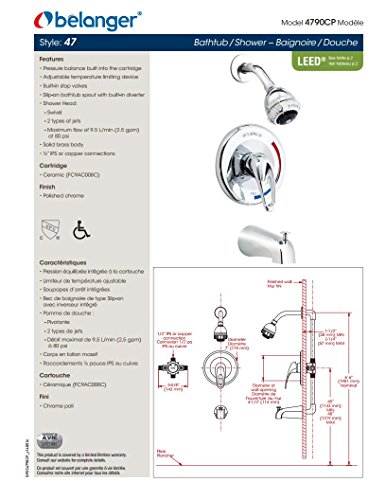 浴槽/シャワー蛇口、ポリッシュクローム仕上げがなされており、1-ハンドル