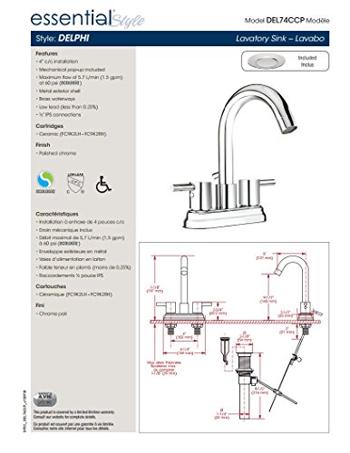 Belanger DEL74CCP Bathroom Sink Faucet with 2-Handles and 4 Centerset, Polished Chrome by Keeney Manufacturing