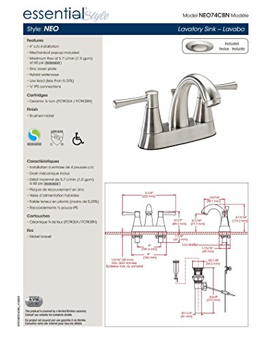 Belanger NEO74CBN Bathroom Sink Faucet with 2-Handles and 4 Centerset, Brushed Nickel by Keeney Manufacturing