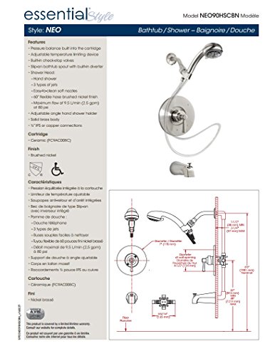 Belanger Bathtub /シャワー蛇口with 1-ハンドルとシャワーヘッド NEO90HSCBN 1
