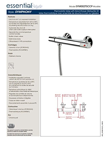 Belanger SYM002TSCCP Thermostatic Valve with Hand Shower Sliding Bar Kit, Polished Chrome by Keeney Manufacturing
