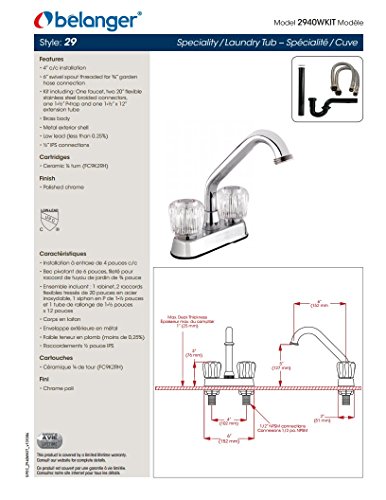 Belanger 2940 WKITランドリー蛇口、インストールキットと2-handles、ポリッシュクローム