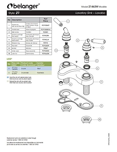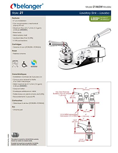 Belanger 21463 Wバスルームシンク蛇口2ハンドルと4インチCenterset、ポリッシュクローム