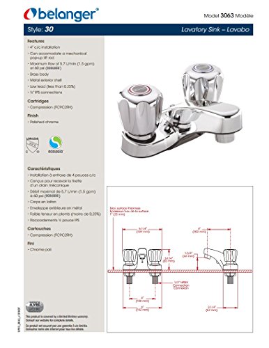 Belanger 3063バスルームシンク蛇口2-handlesと4インチCenterset、ポリッシュクローム