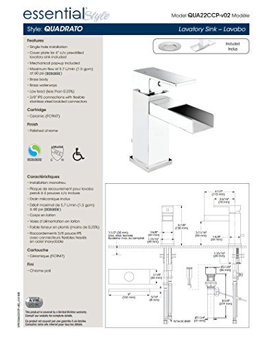 Belanger qua22ccpバスルームシンク蛇口1-ハンドル付き、1つ穴と4インチCenterset、ポリッシュクローム