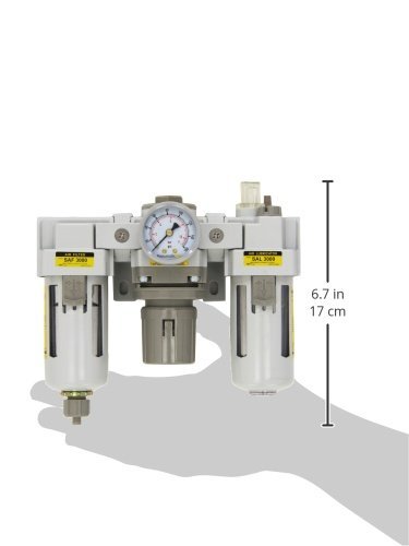 PneumaticPlus SAU Series Modular Air Filter Regulator Lubricator offers complete airline solution for most effective air filtration, pressure control and air lubrication to keep your air tools working properly. Oil Injection on the Lubricator can be adjusted and completed turned off as necessary. SAU Series Modular Air Filter Regulator Lubricator is offered with Drain (Manual or Auto) and Bowl (Metal or Polycarbonate) Options to better suit your needs. Search for different bowl and drain options by typing SAU2000M in Amazon’s search box.