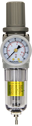 - PneumaticPlus SAW2000M-N02BG Miniature Compressed Air Filter Regulator Combo Piggyback 1/4 NPT - Poly Bowl, Manual Drain, Bracket, Gauge