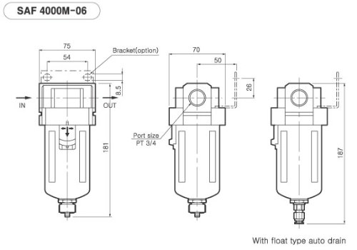 10 Micron Element Standard, 280 SCFM;Auto Drain & Metal Bowl;3/4 NPT Female Thread;Bracket Included;Manufactured in Korea