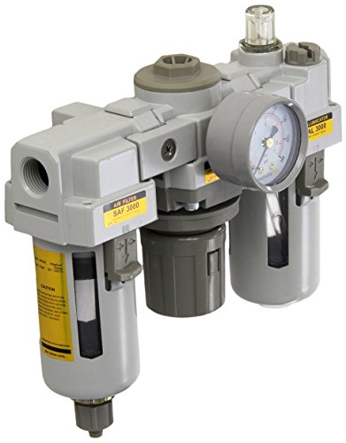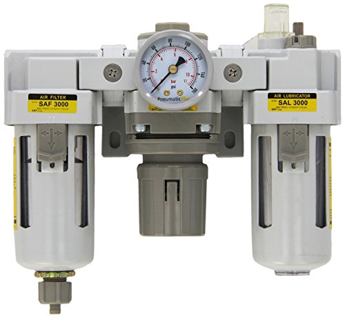 - PneumaticPlus SAU3000M-N03G 3 Unit Combo Compressed Air Filter Regulator Lubricator, 3/8 Pipe Size, NPT-Manual Drain, Poly Bowl, 10 m with Gauge