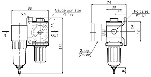PneumaticPlus SAU2020M-N02G Mini Compressed Air Filter Regulator Combo 1/4 NPT - Poly Bowl, Manual Drain, Gauge by PneumaticPlus