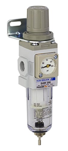 PneumaticPlus SAW200-N02BGS Miniature Compressed Air Particulate Filter Regulator Piggyback Combo 1/4 NPT - Poly Bowl, Manual Drain, Bracket, Embedded Gauge by PneumaticPlus