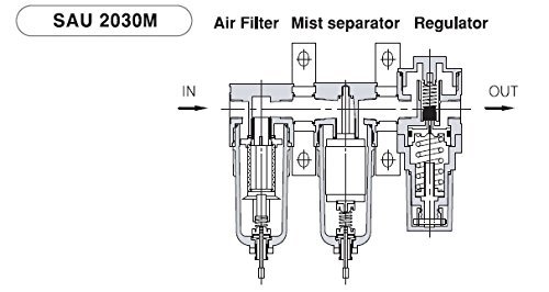 - Filtering out of dirt and foreign particles, and the separation of moisture is automatic with air flow. There are no moving parts and no adjustments are necessary. Accumulated sludge and moisture should be drained off.