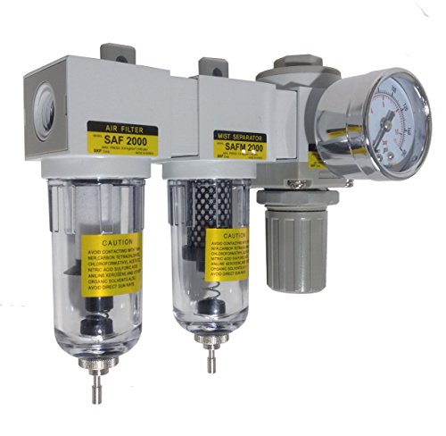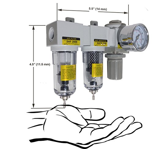 PneumaticPlus SAU2030M-N02G Mini Three Stage Air Drying System, 1/4" NPT - Particulate Air Filter, Coalescing Filter, Air Pressure Regulator Combo - Poly Bowl, Manual Drain [並行輸入品]