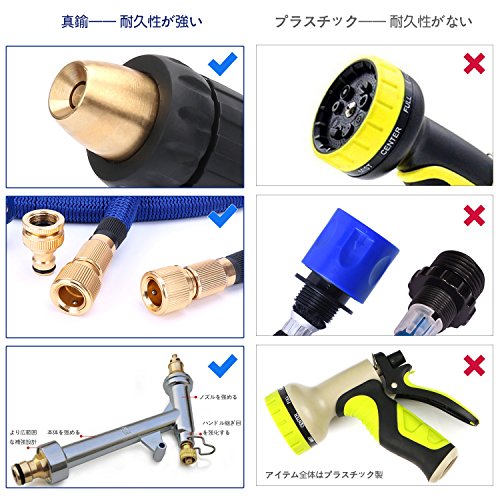 - 銅製コネクタやノズル:ほかのプラスチック製の散水ホースと異なり、その銅製コネクタやノズルは漏れたり、断裂したり腐食されたり絶対しませんので、ご安心にご使用いただけます。