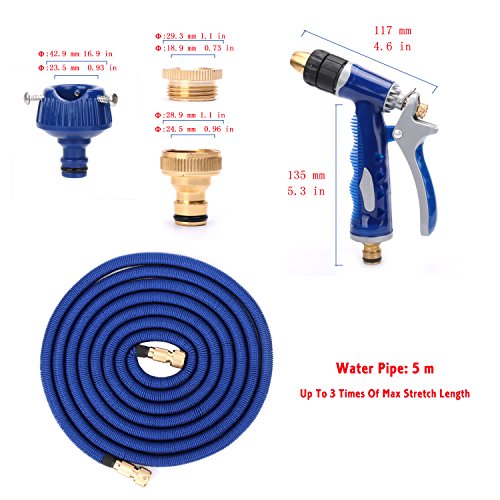 Pomelo Best 伸縮ホース 超強化マジックホース素材 5m~15m 3倍のびるホース 金属コネクタやノズル 改良版伸びるホース 散水ホース 洗車用ホース 犬のシャワー ガーデニング ベランダ・庭・ブルー掃除 部屋の洗濯用