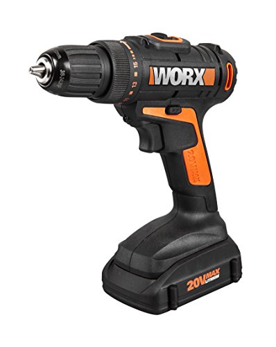LED light to brighten dark areas. The Worx 20V Drill Driver is a must-have tool for every household. Efficient, lightweight design is easy to control and fits in tight places. The 1.5Ah Lithium ion battery provides plenty of runtime, and holds its charge up to 18 months. Part of the Worx Power share family, this drill shares batteries with popular Worx cordless products such as GT Grass trimmer and Worx Air Sweeper/Vac.