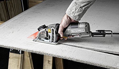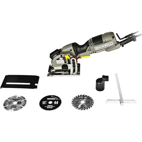 The Rockwell Rk3440K Versacut Is A Powerful, Multi-Functional Ultra-Compact Circular Saw Which Can Cut Different Materials Such As Wood, Flooring, Plastic, Ceramic Tiles, Slate, Aluminum And Even Sheet Metal. The Versacut Features A Lightweight, Compact, Balanced Design Perfect For Everyday Cuts, With An Integrated Lock And Switch For Easy, One-Handed Operation. The Laserguide Indicator Provides Accurate Cuts And The Easy To Set Depth Indicator Helps For Quick And Precise Depth Adjustments. 4 Amps With A No Load Speed Of 3500 Prm And Depth Of Cut Is 1-1/16". Kit Contains: , Rk3440K Circular Saw, 1 - Hss Blade, 1 - Carbide Blade, 1 - Diamond Blade, 1 - No-Mar Base Plate, 1 - Vacuum Adapter, 1 - Straight Edge Guide.