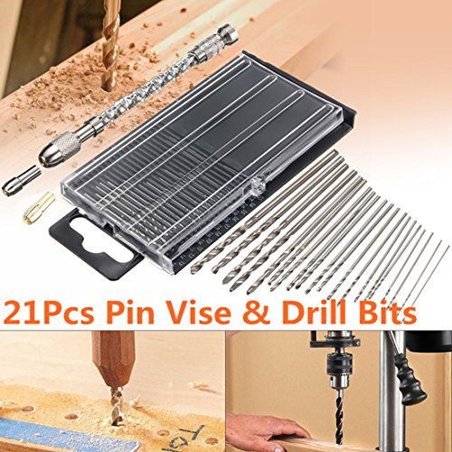 DRILLPRO 21個入り ピンバイス ツイストドリルビットセット セミオートマチック ドライビングドリルビット 木 クルミ 穴あけツール 0.3mm-1.6mm
