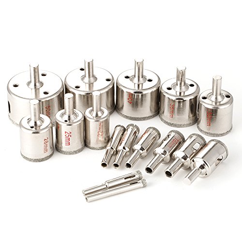 Powanfity_JP ホールソー ガラス タイル 穴あけ 切削 工具 ダイヤモンド コアビット 16本セット 6mm 8mm 10mm 12mm 14mm 16mm 18mm 20mm 22mm 25mm 28mm 30mm 35mm 40mm 45mm 50mm