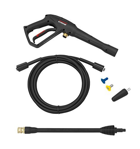 Power stroke ps14120 1600psi electric pressure washer is ideal for any cleaning job! this pressure washer features a low compact cg design with a roll cage frame that increases stability. There is a quick release handle and integrated wheels that make it convenient to transport. Included is a turbo nozzle for those harder to clean jobs, a trigger gun and a wand and nozzle storage.