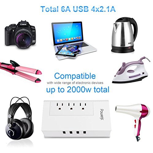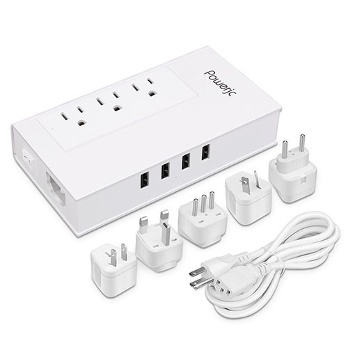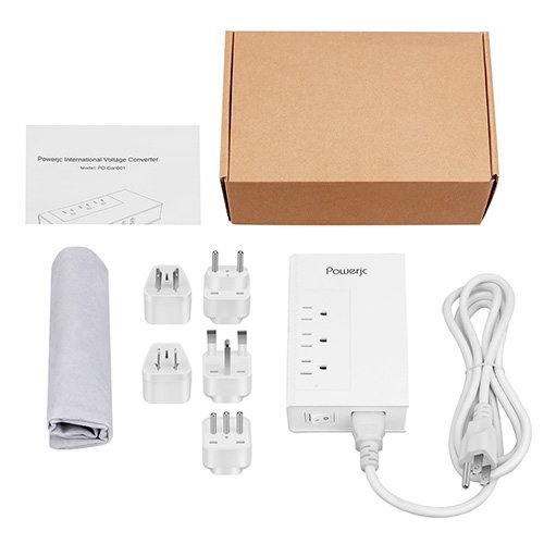 Powerjc 海外旅行用変圧器 USBポート付 マルチ変換プラグ付 容量1875w 220vto110v±10% 1.5mコード AC電源アダプター トランス 騒音なし 充電器 降圧