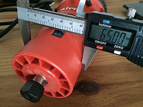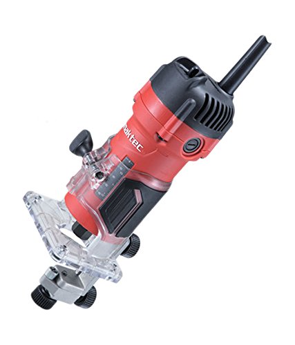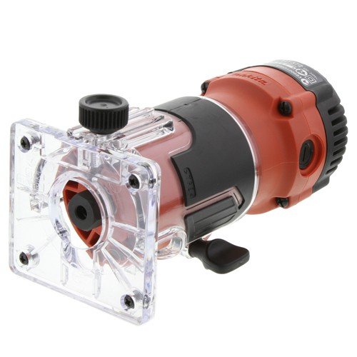 Ideal for trimming laminates, edging, freehand and template design work. On/off toggle switch conveniently located for efficient operation. Top-mounted cord guard prevents power supply cord from becoming a nuisance in operation. Double insulation. Toggle switch is located at the position easy to operate. Transparent base fro clear view of trimming area sight line. Specifications Capacity - Collet capacity 6.35mm Continuous rating input 530W No Load Speed 35,000r/min Overall height 199mm Power cord 2.0m Weight 1.4kg