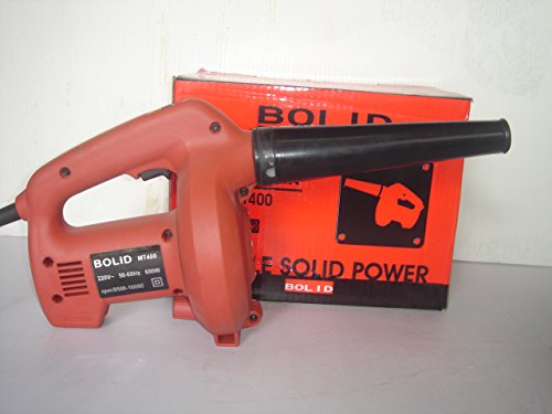 MAKTEC MT400 BLOWER Technical Specification Continuous rating Input 500W Air Volume 1.3 - 2.4 m3/min Air Speed 44-78 m/s No load speed 8,500 - 16,000 rpm Dimensions (L x W x H) 428 x 163 x 212mm (16-7/8" x 6-3/8" x 8-3/8") Net weight 1.3kg (2.9lbs) Power supply cord 2.0m (6.6ft) Features Ergonomically designed handle with rubberized soft grip whch fits your hand perfectly to provide maximum comfort and control Conveniently located speed control dial On-tool storage for sash nozzle In-line grip for maneuverability Standard Equipment: Nozzle, Corner nozzle Product Specification for "Maktec MT400 Air Blower 500W, 8500-16000 rpm" Air Volume 1.3-2.4 m3/min Air Volume 1.3-2.4 m³/min Application This electric blower cleans car dust, computer dust, electrical gadgets, gas stoves and all places where nothing but air can go. Perfect for small jobs, very handy to use, even use it as a hair dryer or fan at low speed. Brand Name Maktec View all products of Maktec Color Red Contents In The Box Nozzle Assembly, Corner Nozzle Frequency 50 Hz Item Weight 1.3 kg Material Type Plastic Model MT400 Model MT400 No Load Speed 8500-16000 rpm No Load Speed 8500 RPM Power Consumption 500 W Power Consumption 500 W Product Dimensions (LxBxH) 428 x 163 x 212 mm TSIN T06MKT0042 Voltage 230 V Warranty 6 Months Against Manufacturing Defects With Vacuum or Not (Y/N) No Accessories Standard: Nozzle Assembly, Corner Nozzle Cord Length 2 m Dimension 428 x 163 x 212 mm Key Features In-line and ergonomically designed grip for easily applying the nozzle to the target to be blown away. Part Number MT400