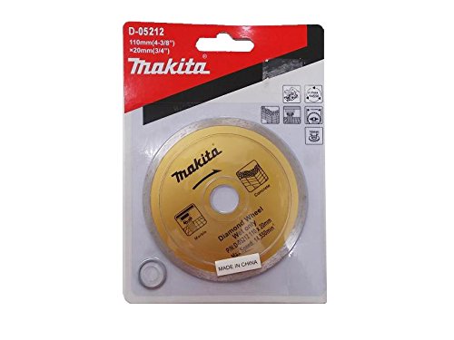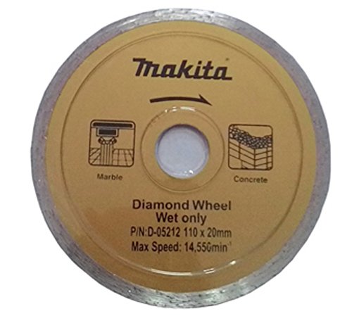 Makita® 4" Continuous Rim Diamond Wheel Blade D-05212 Specially suitable for concrete, block, u-shaped groove, sidewalk block, cemented tile, marble and unglazed tiles. Suitable for bricks, aggregate blocks, french tiles and tiles. Genuine Makita® 4" Continuous Rim Diamond Wheel Blade D-05212 - Economy grade type - Grade: Wet only - Wheel diameter: 110 mm - Wheel thickness: 1.6 mm - Blade length: 5 mm - Hole diameter: 20 mm - For Makita 110 mm cutters
