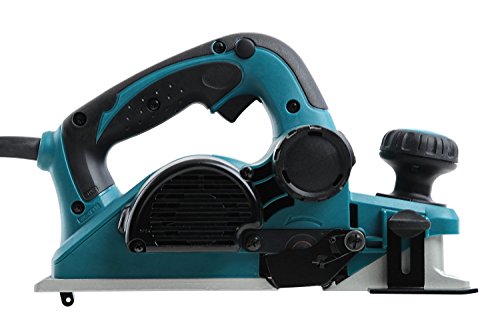 Planes up to 3-1/4" wide and 5/32" deep in a single pass Two-blade cutter head with 16,000 RPM delivers smooth finish and fast stock removal Chip ejection can be directed to either side of the tool for convenience Depth adjust knob features an easy-to-read scale with click stops in 0.1mm increments for precise depth adjustment Conveniently located lock-on/off button can be operated from either side of handle Ergonomically designed rubberized grip and depth adjustment knob for comfort and control Front base features 3 chamfering groove options: approximately 1.4 mm, 3 mm and 4 mm Rigid die-cast aluminum housing supports planer drum for increased durability Spring-loaded stand elevates the base to protect the blades and workpiece Powerful with less weight (7.5 AMP motor; 7.3 lbs.)
