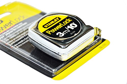 Stanley Powerlock® These are metric/imperial tape measures featuring thumb operated blade lock, automatic power blade return and a removable belt clip. The blade is printed in yellow, black and red for easy reading and is coated with a polyester film for maximum wear resistance. The end of the blade is fitted with a 'true-zero' sliding hook. (Markings to EEC pattern 1690 part 11). ® Powerlock is a trade mark of Stanley Tools Ltd Tape Measures