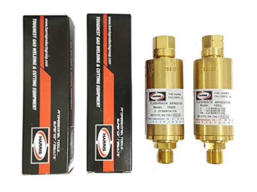 - Flashback arrestor set has internal check valves for both oxygen and acetylene