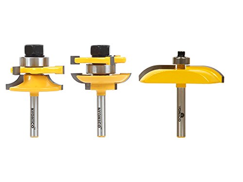 Yonico 12339qドア組み立てルータビットセットに含まれるものは、1/4インチ(6.35mm) ラウンドオーバーレールとスタイルビット、及び、 1/4インチ(6.35mm) のコーブパネルレイザーです。最大1インチ(25.4mm) のストックを使用できます。