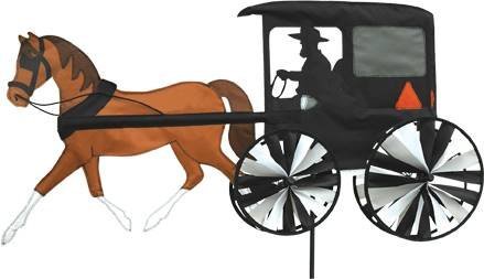 Horse and Buggy 36.5 x 18 in diameter: 10 in. Premier presents a new line of value-priced Accent Spinners for the garden. Smaller and less detailed than our WindGarden spinners but just as eye-catching new Accent Spinners utilize brand new hardware and fabric. SunTex is a revolutionary 210D polyester fabric with added density available only from Premier. It provides bright colors durability and UV resistance that is far superior to other spinner fabrics on the market and second only to SolarMax. For customers who love Premier spinners but shy away from premium WindGarden pricing our new Accent Spinners provide an affordable yet durable alternative. Dimensions (H x W x L) : 25 x 18 x 18