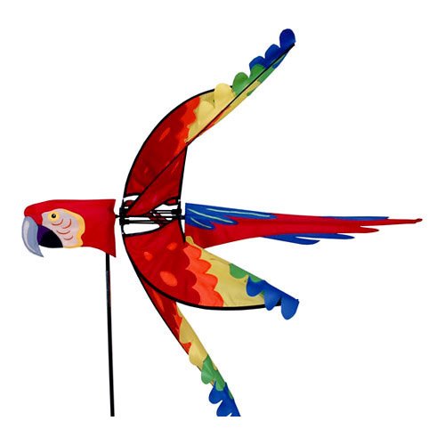Scarlet Macaw Spinner. Made with fade-resistant SolarMax fabric our spinners will dazzle your store and showroom. Unlike other ordinary spinners made with nylon or polyester ours can withstand daily UV rays rain and snow. Each spinner comes with two heavy duty fiberglass poles and a ground stake.