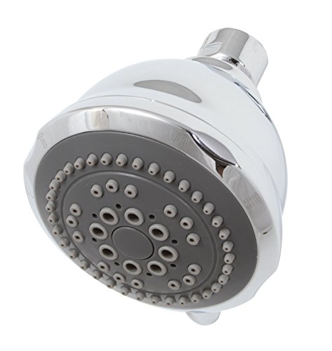 2.5 GPM. Gray face with gray easy clean rubber spray jets. 5 settings ABS body with brass ball joint 25 gpm Gray face with Gray easy-to-clean rubber spray jets.