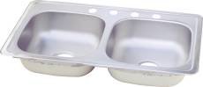 - Elkay k233224 Self Rimming Double Bowl Kitchen Sink with 4 Hole Faucet Drilling, 33 Long x 22 Wide, Stainless Steel
