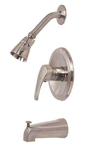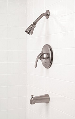 Color:PVD Brushed Nickel Product Description | Zinc lever handle | Pressure balance faucet | Integral stop | Metal escutcheon | Brass showerhead and arm, SS flange | Zinc spout | Ceramic cartridge with stop valve | Trim kit includes brass showerhead and arm, shower flange, spout, escutcheon, and handle | Valve includes valve body, ceramic cartridge and mud guard - Manufacturer: Premier - Country of Manufacture: China - Manufacturer Part Number: 873-0704. From the Manufacturer The smooth contours of Bayview's lever handle provide both a striking look and precise temperature control. Bayview's pressure balanced valve prevents hot water scalding and cold water shock due to fluctuations in water pressure. Complete your bath's integrated look with this Bayview ceramic disc tub and shower faucet set. The Bayview tub and shower faucet features a metal lever handle and escutcheon, a brass showerhead and arm, a stainless steel flange, a zinc spout, a wear-resistant ceramic disc cartridge with stop valve, and a PVD brushed nickel finish. Premier's physical vapor deposition (PVD) process provides a brushed nickel finish that is exceptionally strong and resistant to corrosion tarnishing, scratching, and discoloration. It complies with the requirements of the Uniform Plumbing Code and the Americans with Disabilities Act. It is covered by Premier's industry-leading Limited Lifetime Warranty.