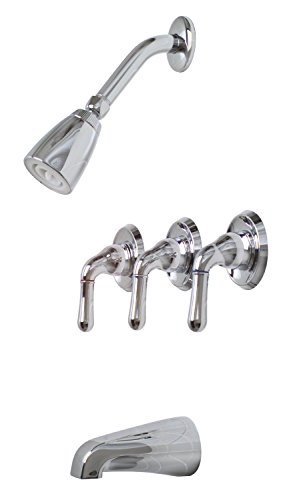 Color:Chrome Product Description 120636 Features: -Finish: Chrome. -Lever handles. -0.25' Turn operation. -Comes with extra set of acrylic and porcelain handle inserts. Dimensions: Overall Product Weight: -6.07 lbs. Supply Length: -7.384'. From the Manufacturer Sanibel's ceramic disc tub and shower faucets are built to perform and designed to withstand even harsh hard water environments. This faucet features three lever handles, a chrome-plated finish, 1/2-Inch brass IPS connections with ground joint swivel unions, trouble-free ceramic disc cartridges, and a color matched showerhead, escutcheon, tub spout, and trim. This Premier faucet complies with the requirements of the Uniform Plumbing Code and the Americans with Disabilities Act. It provides a flow rate of 2.5 gallons per minute from the showerhead and 4.0 gallons per minute from the tub spout. It is covered by Premier's industry-leading Limited Lifetime Warranty.