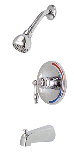 Color:Chrome Product Description 120137 Finish: Chrome Features: -Single handle tub and shower faucet.-Brass shower arm and flange.-Single teapot-style metal handles.-0.5'' IPS connections.-Complies with the requirements of the Uniform Plumbing Code. Includes: -Slip-fit spout and includes plug. Dimensions: -Overall dimensions: 2.5'' H x 5.75'' W x 5.5'' D. Collection: -Wellington collection. Warranty: -Manufacturer provides limited lifetime warranty. From the Manufacturer Premier offers stylish tub and shower faucet sets that complement our latest lavatory and kitchen products by providing matching handle designs and brilliant finishes. The Premier Wellington collection redefines affordable luxury and graceful sophistication. Premier's easy-to-clean showerhead prevents water deposits from clogging the nozzles?simply brush your showerhead's spray jets by hand to clean after use. Wellington's pressure balanced valve prevents hot water scalding and cold water shock due to unexpected changes in water pressure. It includes a trouble-free washerless cartridge which is reversible for back-to-back installations. Its heavy-duty chrome-plated finish and all-brass construction contribute to its durability. The Premier Wellington single-handle faucet features a lever handle that provides smooth operation and exact temperature control. It includes 1/2-Inch FIP inlets and outlets. It also includes a chrome tub spout with a convenient slip-fit connection, a brass shower arm, and flange. The showerhead provides a powerful flow rate of 2.5 gallons per minute while the tub spout offers a flow rate of 2.4 gallons per minute. This faucet also complies with the requirements of the Uniform Plumbing Code and the Americans with Disabilities Act. It is backed by Premier's Limited Lifetime Warranty. Complete your Wellington bathroom suite with matching bath accessories and vanity lighting (sold separately).