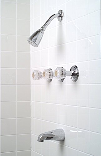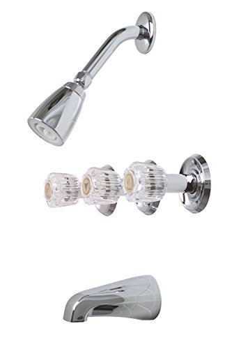 Product Description 2012033 Features: -Complies with the requirements of the Uniform Plumbing Code. -Concord collection. Product Type: -Tub and shower faucet. Shower Head Type: -Fixed shower head. Style: -Traditional. Finish: -Chrome. Material: -Metal. Flow Rate: -2.5 Gallons Per Minute. Diverter Type: -Trim with diverter/Tub spout diverter. Faucet Control Type: -Volume control. Faucet Handle Included: -Yes. Installation Type: -Wall mounted. Number of Faucet Handles: -3. Dimensions: Shower Head: -Yes. Overall Product Weight: -4.78 lbs. From the Manufacturer Premier Concord tub and shower faucets offer traditional designs at an extraordinary value. Traditional Premier quality means that your tub and shower faucets will perform consistently and reliably. The tub and shower faucet features three acrylic handles, all-brass construction, 1/2-Inch brass IPS connections, and a chrome-plated finish. The faucet set delivers a flow rate of 2.5 gallons per minute from the showerhead and 4.0 gallons per minute from the tub spout. It complies with the requirements of the Uniform Plumbing Code and includes Premier's Limited Lifetime Warranty.