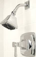 Product Description Premier Faucets 120272 Union Square Single Handle Shower Only Faucet. Shower Only Faucets > One Handle. Premier Single Handle Shower Only Faucet, Union Square Collection, Metal Single Lever Handle, Washerless Cartridge, Brass Showerhead, Arm and Flange, Pressure Balanced Shower Only Faucet, American with Disabilities Act Compliant. From the Manufacturer Named after San Francisco's thriving downtown shopping and theater district, Union Square faucets and accessories add a dynamic and cosmopolitan look to any bathroom. Inspired by the Art Deco design movement, Union Square faucets feature symmetric style, geometric form, and subtle curves. Union Square's shower faucets bring an atmosphere of relaxation and luxury to your bath. The enchanting Union Square showerhead features 80 powerful jets to create a soothing shower experience. The easy-to-clean showerhead also prohibits water deposits from clogging the nozzle?simply brush the showerhead with your fingertips to clean after use. Premier's pressure balanced valve prevents hot water scalding and cold water shock due to fluctuations in water pressure. This faucet features a single metal lever handle for precise temperature control, a heavy-duty chrome-plated finish, a trouble-free washerless cartridge, and a brass showerhead, arm, and flange. This Premier faucet complies with the requirements of the Uniform Plumbing Code and the Americans with Disabilities Act. Showcase your unique decorating tastes with Union Square style.