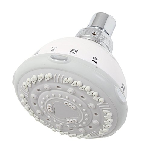 192050 Finish: White Features: -Plastic body with brass ball joint. -Seven settings with 2.5 GPM. -Easy-to-clean silicone spray jets that prevent water deposits from clogging them. Product Type: -Shower head. Shower Head Type: -Massaging shower head. Style: -Contemporary. Spray Pattern: -Massage. Installation Type: -Wall mounted. Dimensions: Shower Head: -Yes. Overall Product Weight: -16.88175 lbs. Shower Head Height - Top to Bottom: -4.72'. Shower Head Width - Side to Side: -3.81'.
