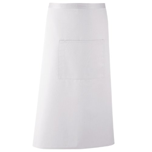 ヨーロピアンスタイル作業用ロング丈バーエプロン。ポケット、ペン用ポケット付き。クリーニング業者洗濯85度以下、ご家庭でのお洗濯は60度以下。ワンサイズ。幅86cm、長さ78cm。素材:クロップマンポリエステル/コットン。
